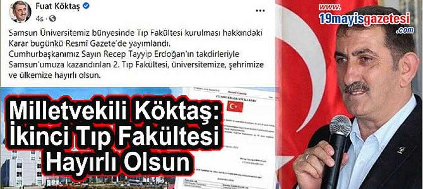 Cumhurbaşkanı Recep Tayyip Erdoğan'ın tensipleriyle Samsun Üniversitesi bünyesinde Tıp Fakültesi kurulmasını büyük bir memnuniyet ile karşıladıklarını belirten Milletvekili Köktaş, “18 Mayıs 2018 tarihinde kurulan ilimizin adını taşıyan Samsun Üniversitesi, bu tarihten sonra hızlı bir yapılanma süreci ile şehrimizin, bölgemizin ve ülkemizin ihtiyaçlarını dikkate alan stratejileriyle, hedeflerine tek tek ilerlemeye devam ettiğini görmek bizleri gururlandırıyor, mutlu ediyor.